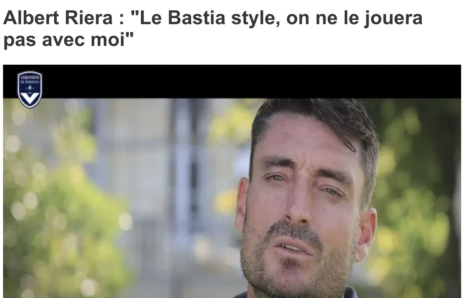 Visiblement Albert Riera, l’entraineur de Bordeaux, n’a toujours pas digéré sa défaite à Furiani (1-3), début novembre. Avant le match de son équipe face à Troyes, (défaite 1-0, le karma ?), le coach bordelais s’est fendu d’un tacle sur la tactique de jeu jugée trop défensive (?) du Sporting Club de Bastia. Extraits.